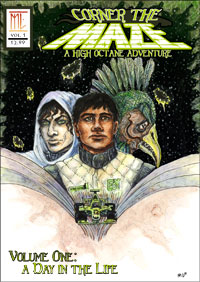 | THE COMIC Corner the Maze is an urban fantasy comic following Chimalli RamÃrez, a racing driver who has found himself stranded in another dimension after veering off track during a sudden rain storm. He's still not sure whether he hit the wall or actually went through the strange glowing green portal, but either way, he's determined to fight his way back home and finish the race. "A racecar driver is stranded in another dimension and must battle his way back home." In a way, the ideas of Corner the Maze came from earlier than that. The aforementioned novel series is something I've been working on off-and-on again since I was ten years old, and that's where the cosmology, villains, and many of the background characters for the comic come from. As far as the portal thing goes, I had a fairly detailed idea down about somebody who accidentally rode a train through a portal to the Otherworld back in 2007, after going on a long train trip to New Mexico -- but nothing ever came of that, both because it had a lot of issues (such as, what to do with all those other people on the train who weren't in the story?), and because I just hadn't learned how to plot a whole story back then. The core idea here is similar, but there's very little in common with that early idea otherwise. The story went through a couple of re-writes before you see it here, but it was essentially the same ever since I started actually writing it. It's mostly the details that changed; the prologue originally took place during qualifying instead of a race, and our hero was racing in several specific series before I decided it was best to leave it vague. As will come as no surprise to anyone who knows me well, the characters (who hadn't already made an appearance elsewhere in my writing) also all went through several name changes before the end! Update Schedule: Corner the Maze updates twice weekly on Tuesday and Thursday, and an update hasn't been missed yet! Process: I had the whole thing outlined and mostly scripted at the start of the project. I then go through and thumbnail it in a sketchbook in clumps of several chapters; once that's done, I pencil it out on 11x17 comic board, and ink over the pencils before scanning the pages into the computer and adding speech bubbles there. I like working traditionally, but believe me, you don't want to see my lettering! THE CREATOR