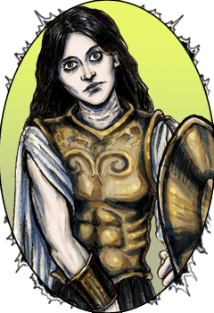 |  THE LIEUTENANT: Artemisia of the Shield First Appearance: Page 26 Latest Appearance: Page 334 Birthdate: Unknown, 496 BCE Birthplace: Sparta, Greece Residence: the Maze Elke's silent lieutenant, Artemisia has seen many battles. She serves as the right hand of the Order as well as their chief scout, and likely has many stories to tell. She appears more tolerant of surprised newcomers than her leader. |
