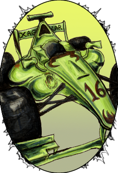 | THE CAR: Etalpalli  First Appearance: Page 1 Latest Appearance: Page 337 Birthdate: 1 January 2016 (the current car) Birthplace: Varano Melegari, Italy Residence: the XAG garage XAG's 2016 car sports a rather bare livery. It's a solid car, handles well, and it's definitely faster than the cars that Chimalli was racing last year... ... and since appearing in the Otherworld, it has also been talking and moving on its own, as well as exhibiting something of a sense of humour. |