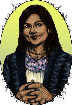 |  THE KNIGHT: Elke (Adalheid) Schmidt First Appearance: Page 21 Latest Appearance: Page 335 Birthdate: 9 May, 1378 (?) Birthplace: a village near Sankt Pölten, Austria Residence: the Maze Master of the Order of the Gate. Who exactly the Order is or why they are in the Otherworld at all is less clear, except that they are apparently fighting the demons. Seems helpful, but to what end? In addition to being a skilled fighter, Elke has also spent centuries honing her skill at presenting information in as mysterious a way as possible. It is unlikely this has anything to do with fighting demons. |